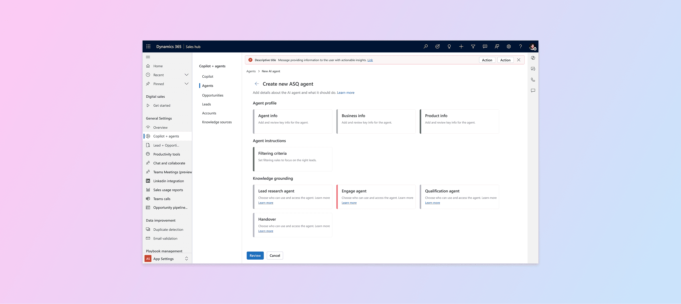 This layout became the governing pattern for all autonomous agents in Dynamics 365.