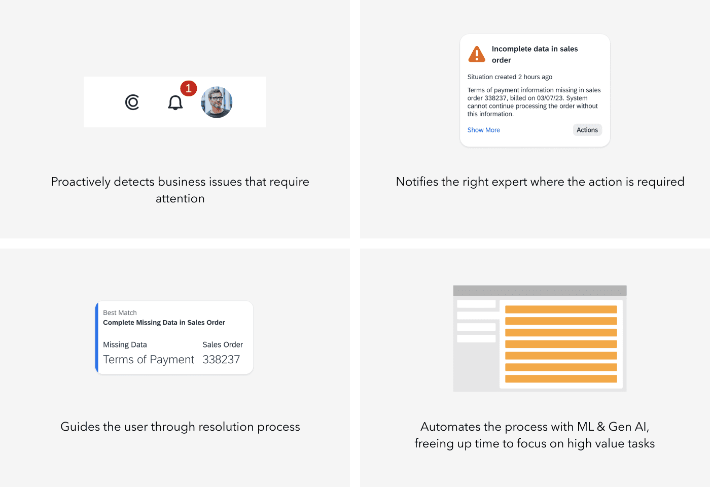 Because Situation Handling operates independently of business applications, it can be integrated easily and consistently across SAP’s ecosystem.